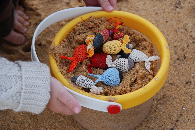 Parlo di Giggles Down Under e dei suoi deliziosi pesciolini crochet realizzati per i suoi bimbi per giocare in spiaggia.